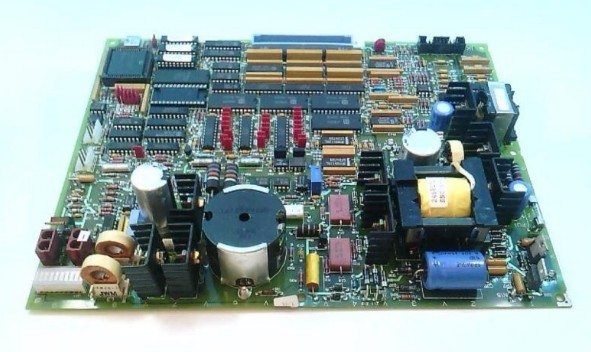 It features a microprocessor and multiple programmable PROM modules, which store firmware and operating instructions used by the microprocessor. The board includes three fuses for added protection and 30 jumpers for configuring the board’s operation.