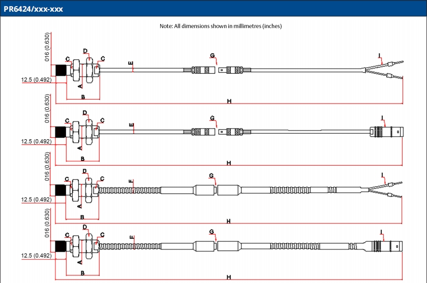 F. Armored cable diameter 6 mm (0.236 in), minimum bending radius 35 mm (1.378 in)